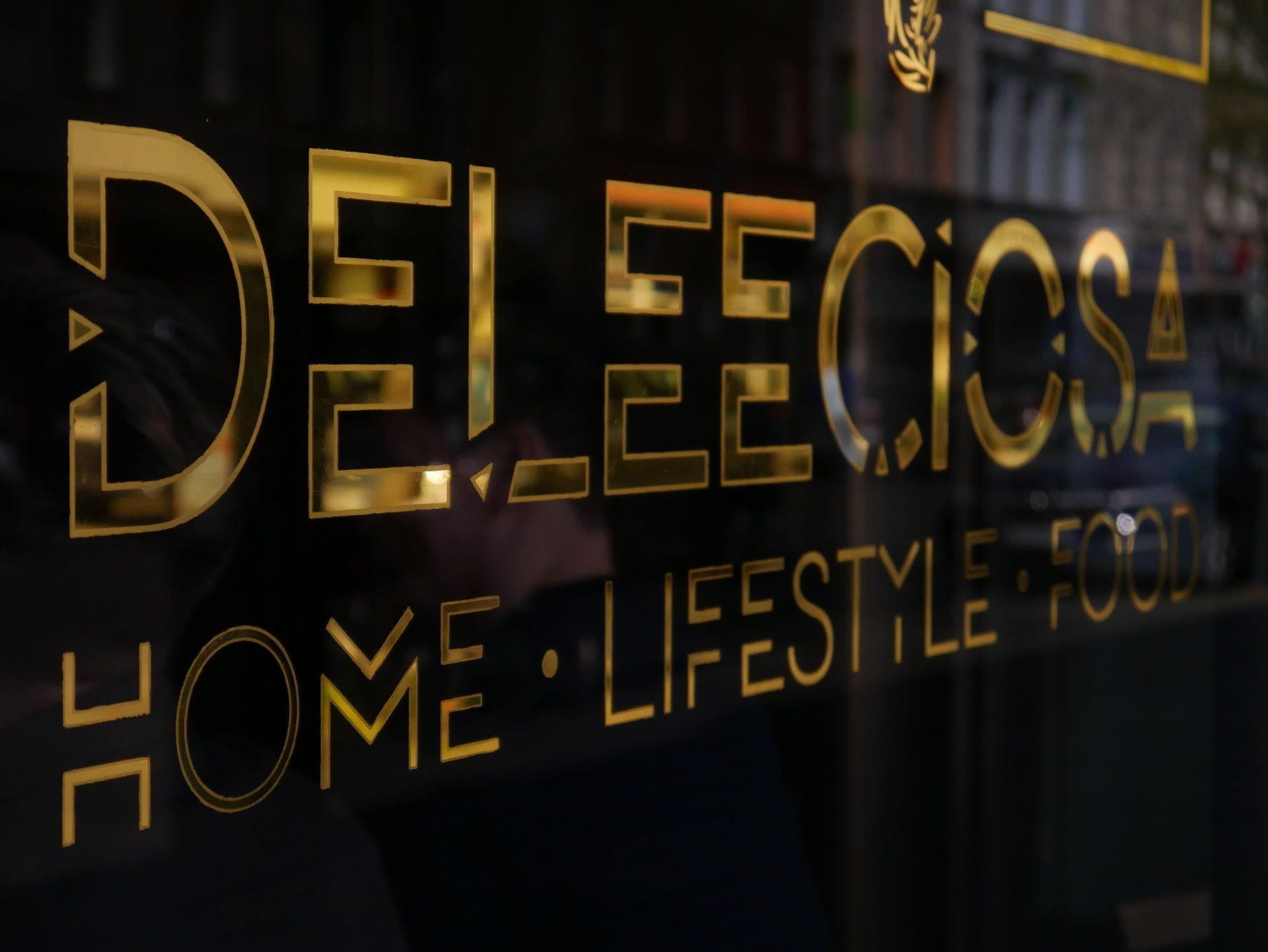 Eine Vergoldung des Schaufensters in 24 Karat lässt die Aussenansicht der Boutique in