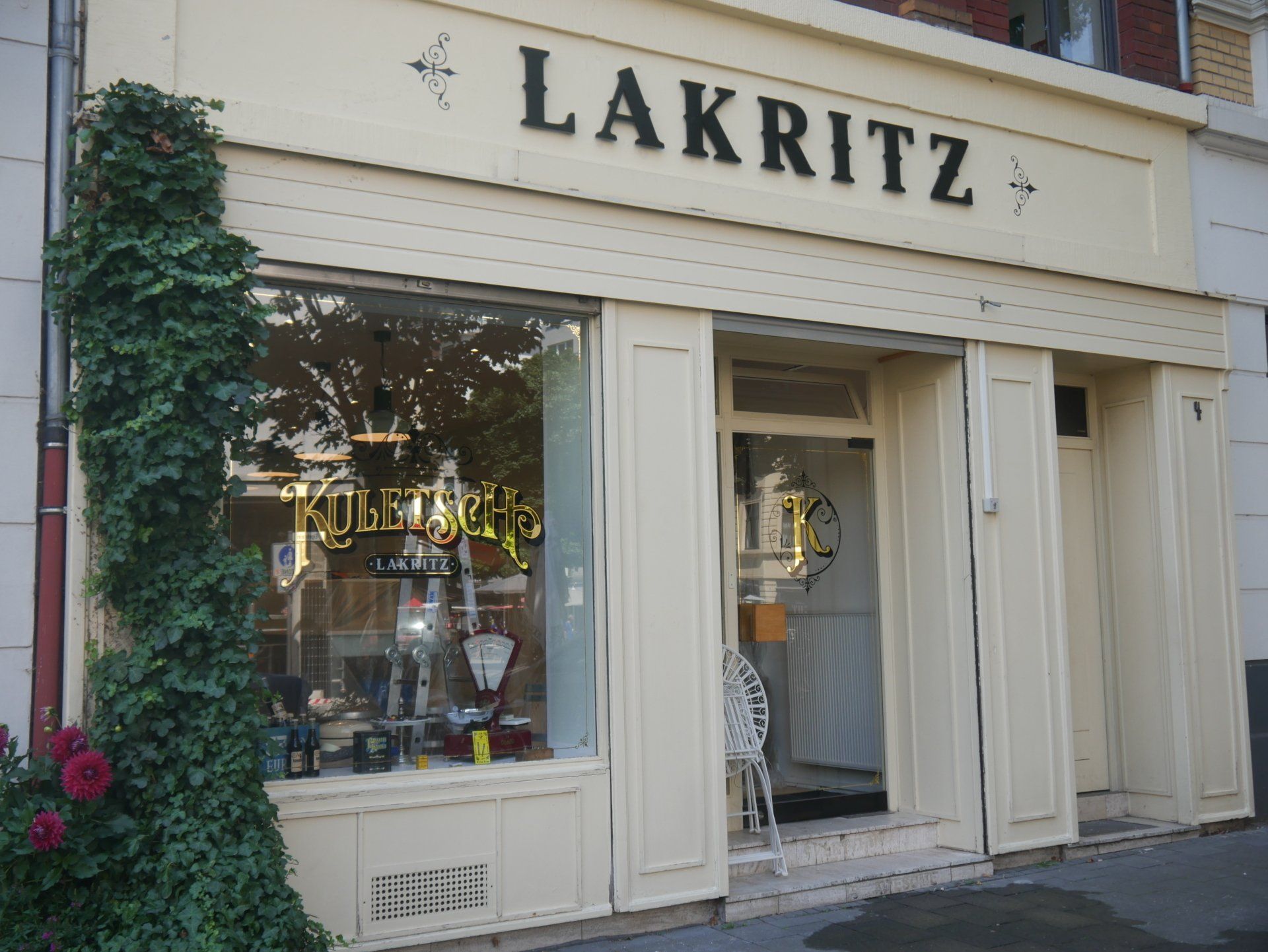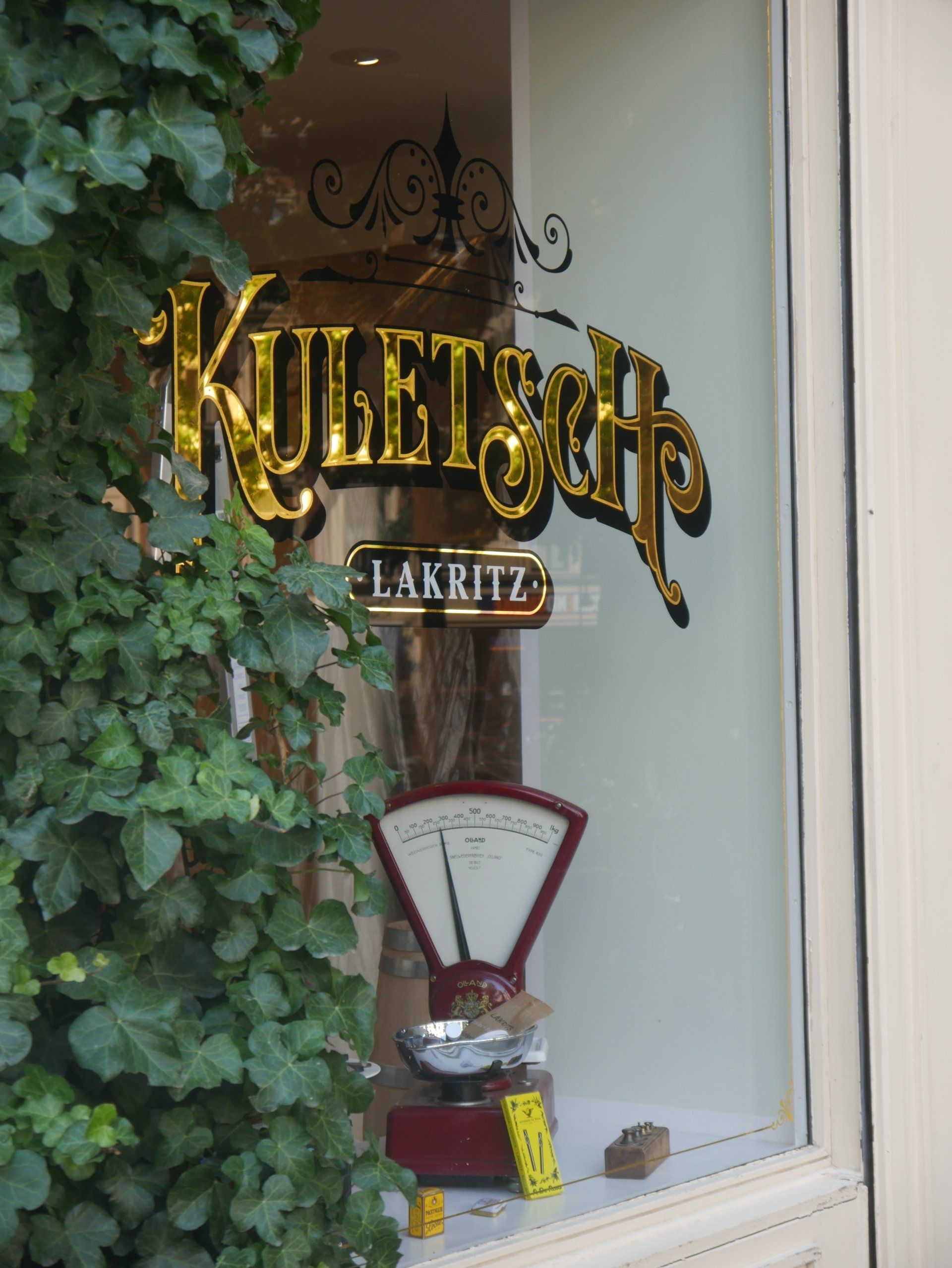 Shop window gilding in 23.75 carat gold leaf, wooden facade letters. as well as fine hand-painted ornaments on the facade give the impression that the liquorice shop has existed there forever.