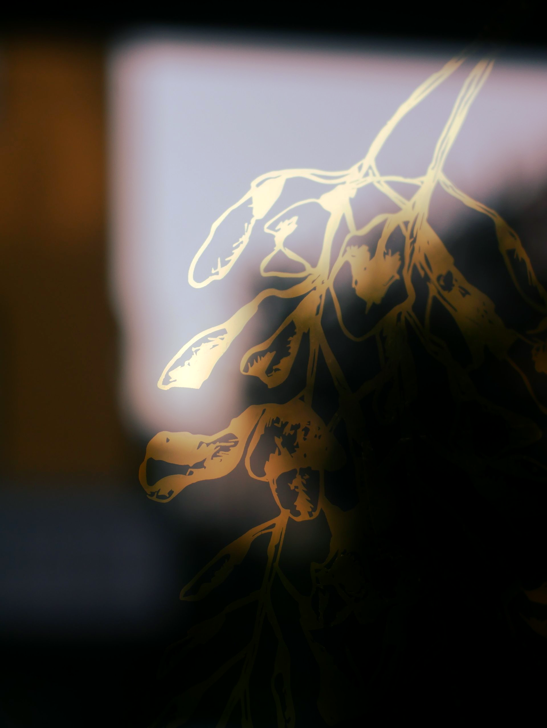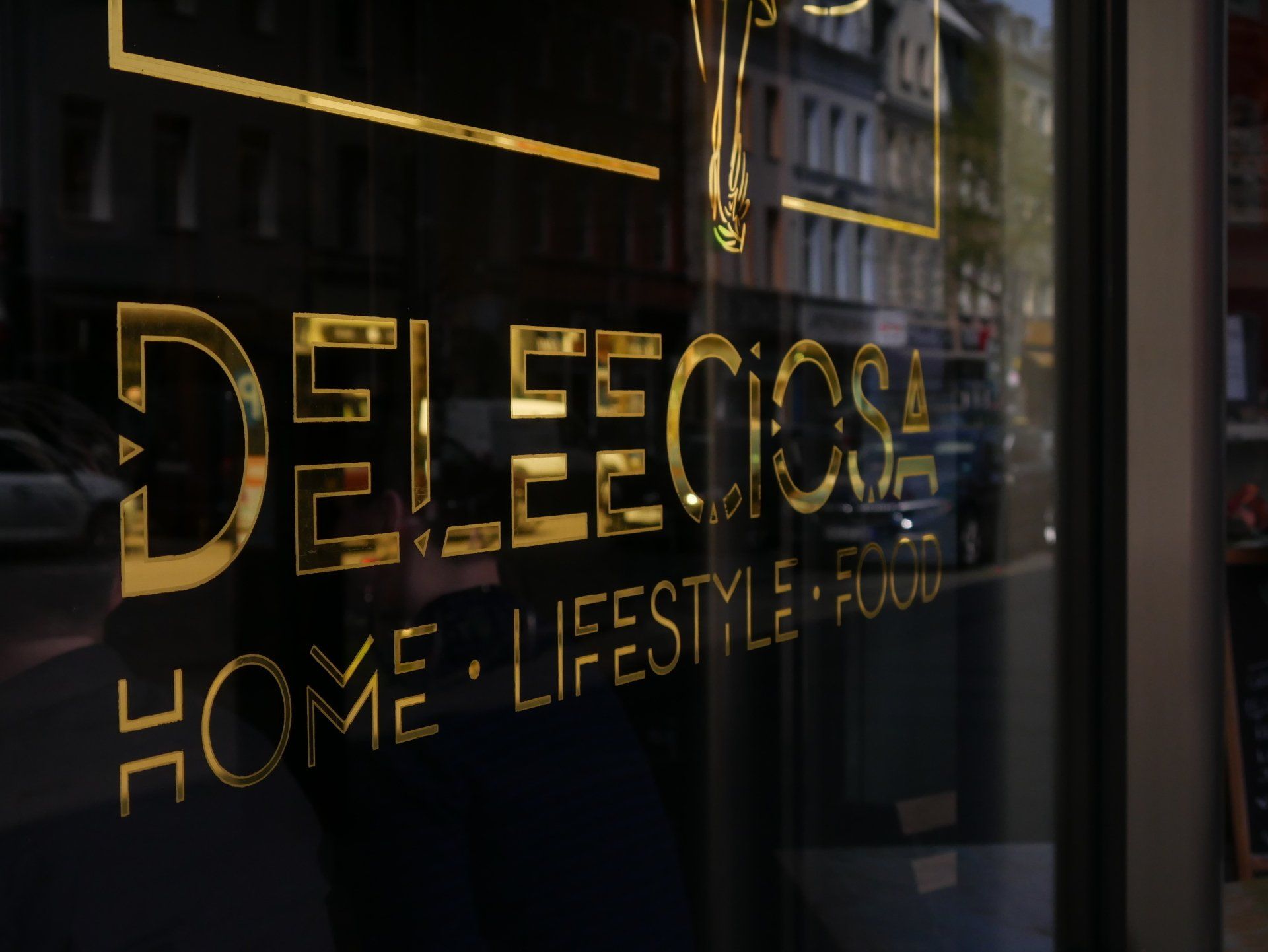 Die handgemachten Vergoldungen auf den Schaufenstern passen sich wunderschön