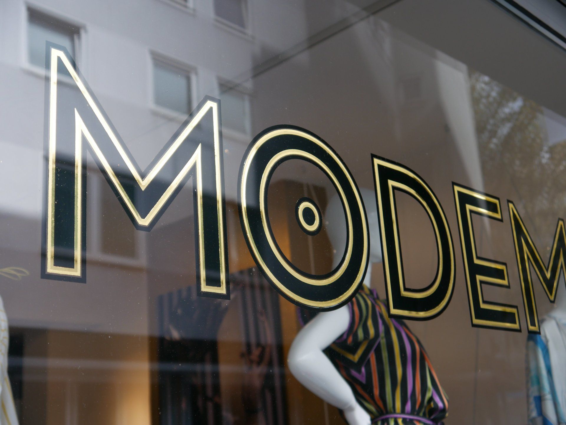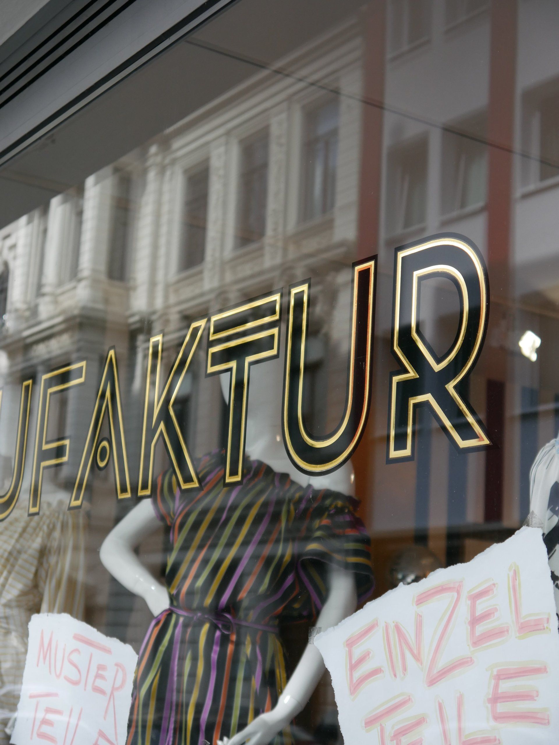 Unsere handgemachte Schaufenstervergoldung in matt/glanz-Optik sorgt für die gewünschte Aufmerksamkeit auf der Palmstraße.